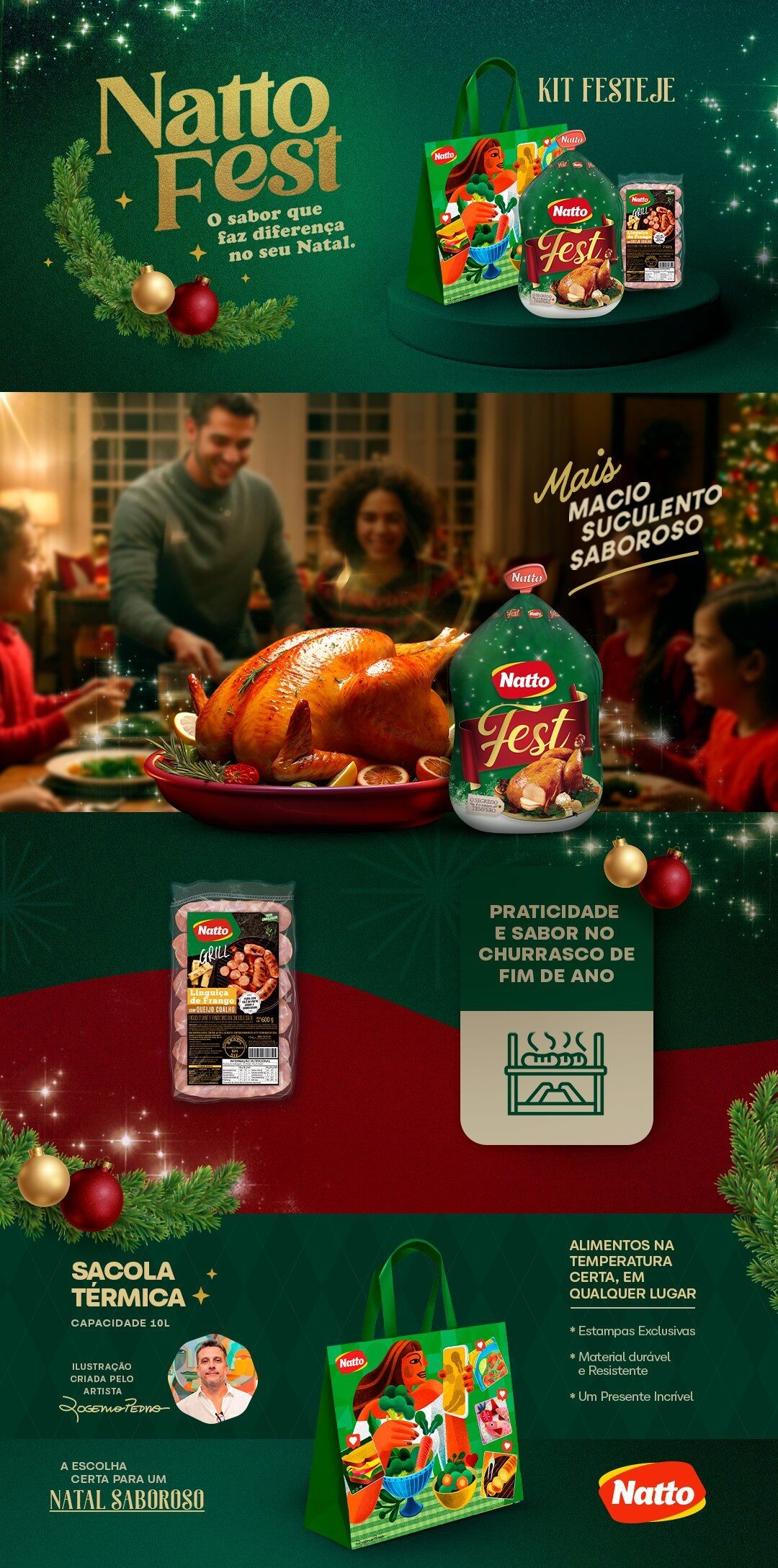 KIT NATTO FEST FESTEJE01 Sacola Térmica Capacidade de 10 Litros01 Ave Natto Fest* *Peso Variável de 3,1kg a 3,4kg Linguiça de frango com queijo coalho (600g)