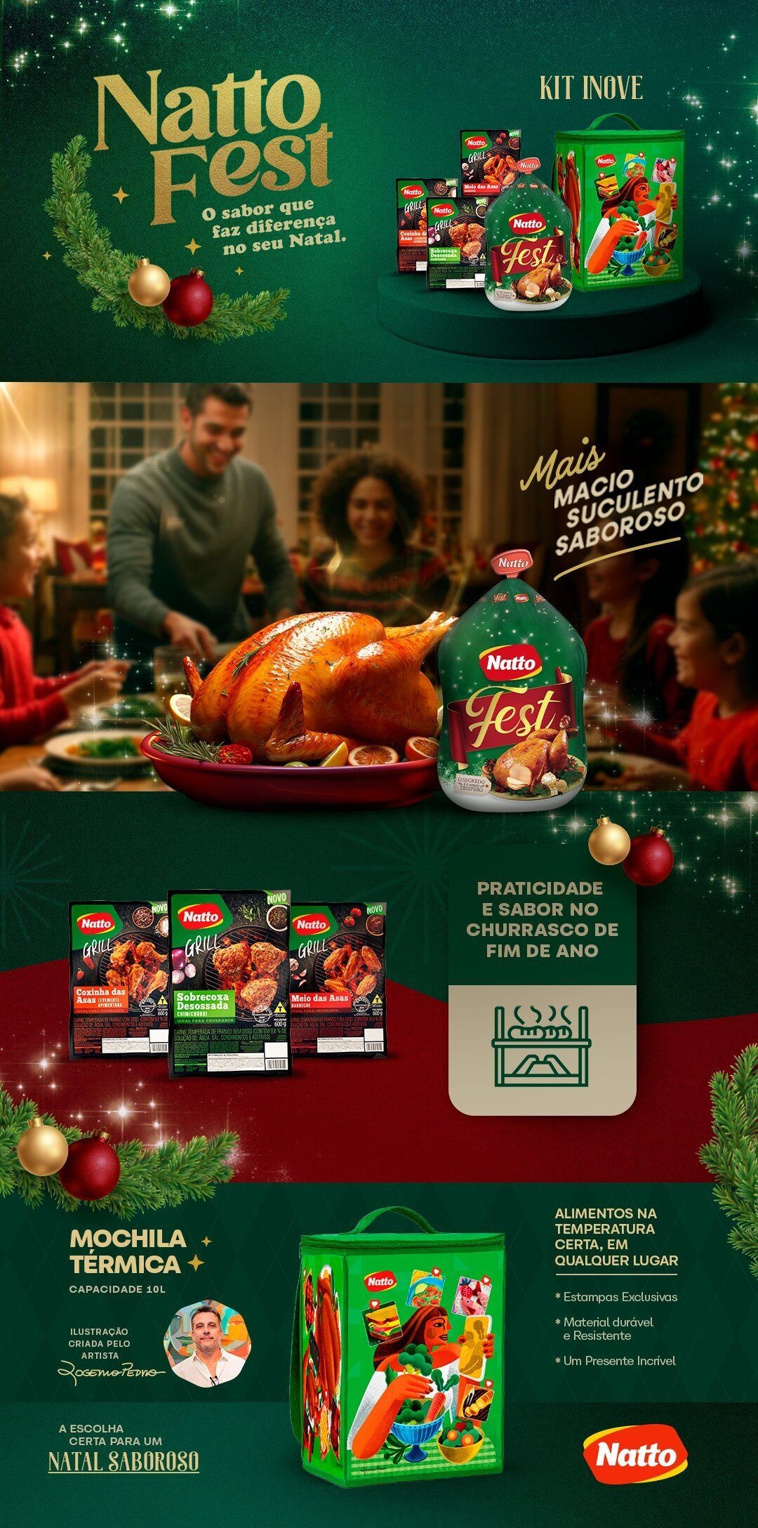 KIT NATTO FEST INOVE01 Bolsa Térmica Capacidade de 15 Litros01 Ave Natto Fest* *Peso Variável de 3,1kg a 3,4kgCoxinha da asa levemente apimentada (600g)Sobrecoxa Desossada chimichurri (600g)Meio da asa barbecue (600g)