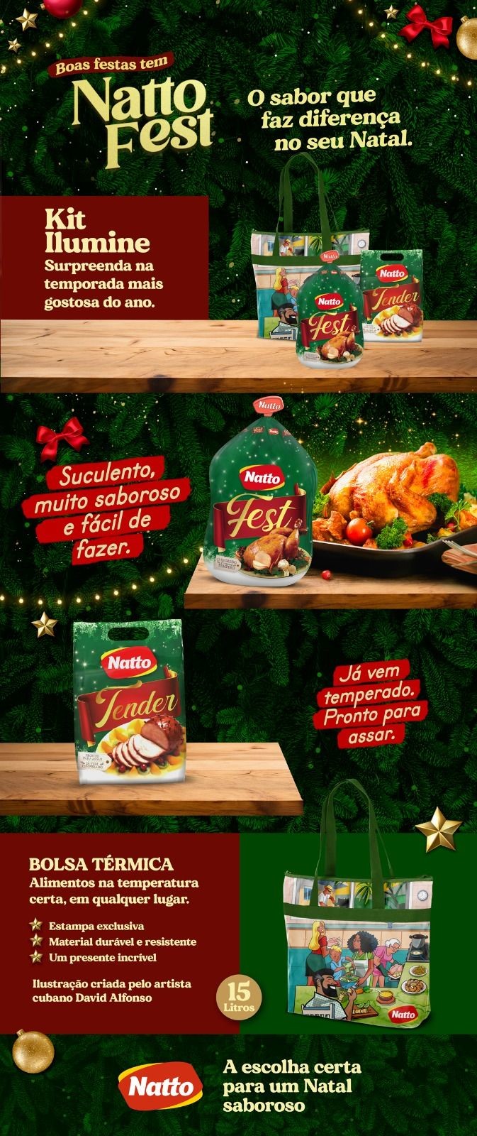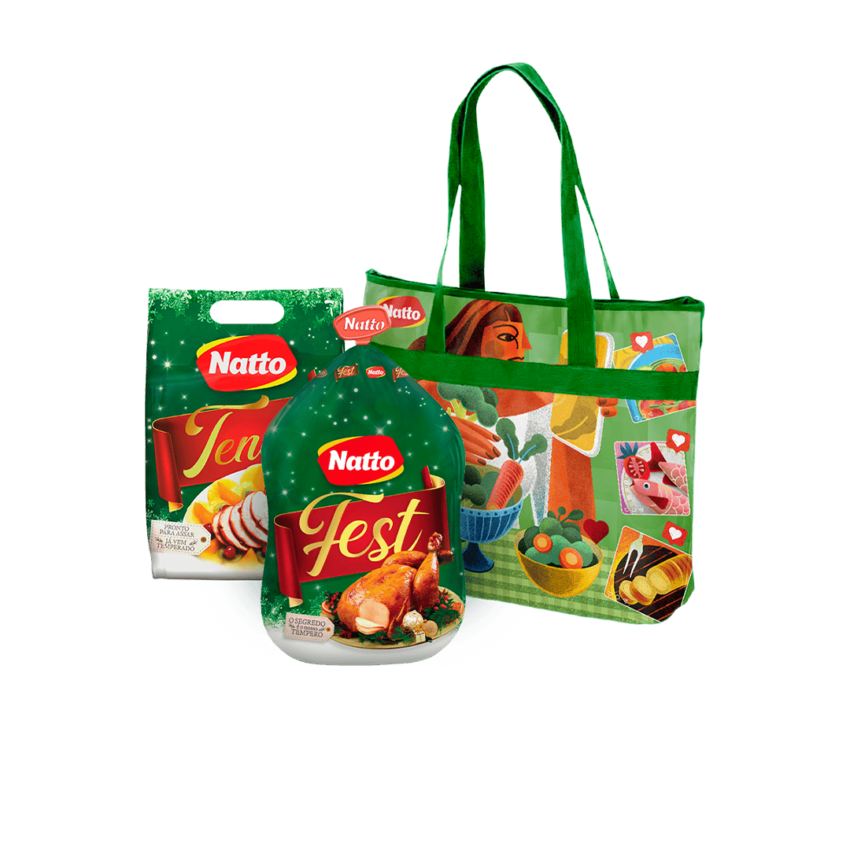 KIT NATTO FEST ILUMINE01 Bolsa Térmica Capacidade de 15 Litros01 Ave Natto Fest* *Peso Variável de 3,1kg a 3,4kg01 Tender* *Peso Variável de 800g a 1,1kg
